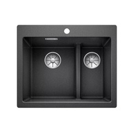 Zlewozmywak Blanco Pleon 9 Silgranit czarny lewa zlew wpuszczany w blat dwukomorowy z odpływem InFino o ponadczasowym eleganckim kształcie