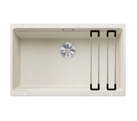 Zlewozmywak Blanco Etagon 6 Ceramika PuraPlus biały połysk zlew wpuszczany w blat jednokomorowy odpływ InFino korek automatyczny szyny genialna piętrowa komora