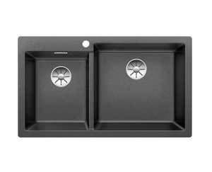 Zlewozmywak Blanco Pleon 9 Silgranit antracyt lewa zlew wpuszczany w blat dwukomorowy z odpływem InFino o ponadczasowym eleganckim kształcie