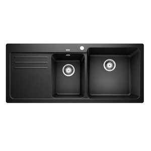 Zlewozmywak Blanco Metra 6 Silgranit czarny zlew wpuszczany w blat 1,5-komorowy odwracalny korek automatyczny nowy prosty kształt