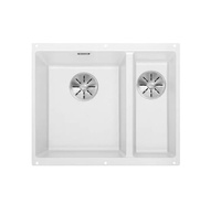 Zlewozmywak Blanco Pleon 9 Silgranit delikatny biały lewa zlew wpuszczany w blat dwukomorowy z odpływem InFino o ponadczasowym eleganckim kształcie