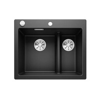 Zlewozmywak Blanco Pleon 6 Split Silgranit czarny lewa zlew wpuszczany w blat jednokomorowy z odpływem InFino korek automatyczny o ponadczasowym eleganckim kształcie