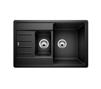 Zlewozmywak Blanco Elon 45 S Silgranit czarny zlew wpuszczany w blat jednokomorowy z odpływem InFino odwracalny korek automatyczny kratka ociekowa przestronne rozwiązanie do niewielkich kuchni