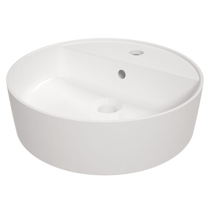 Umywalka nablatowa ceramiczna Square biała okrągła umywalka z miejscem na baterię wykonana z wytrzymałej ceramiki powłoka antybakteryjna