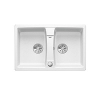Zlewozmywak Blanco Lexa 8 Silgranit biały zlew wpuszczany w blat dwukomorowy odwracalny z odpływem InFino korek automatyczny nowoczesny zlewozmywak pasujący do każdej kuchni