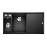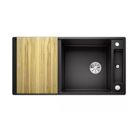 Zlewozmywak Blanco Axia III XL 6 S Silgranit czarny zlew wpuszczany w blat jednokomorowy odwracalny z odpływem InFino korek automatyczny deska jesionowa